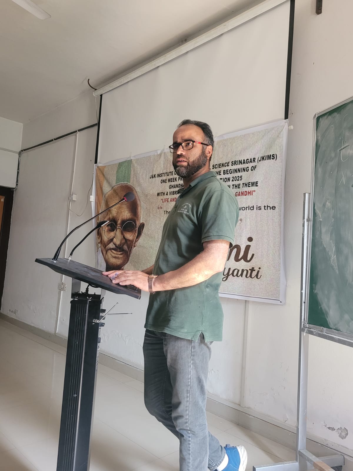 JKIMS celebrated Gandhi Jayanti with great enthusiasm and respect to mark the birth anniversary of the Father of the Nation, Mahatma Gandhi. The programme was organized to highlight his life, philosophy, and contribution towards peace, truth, and non-violence.